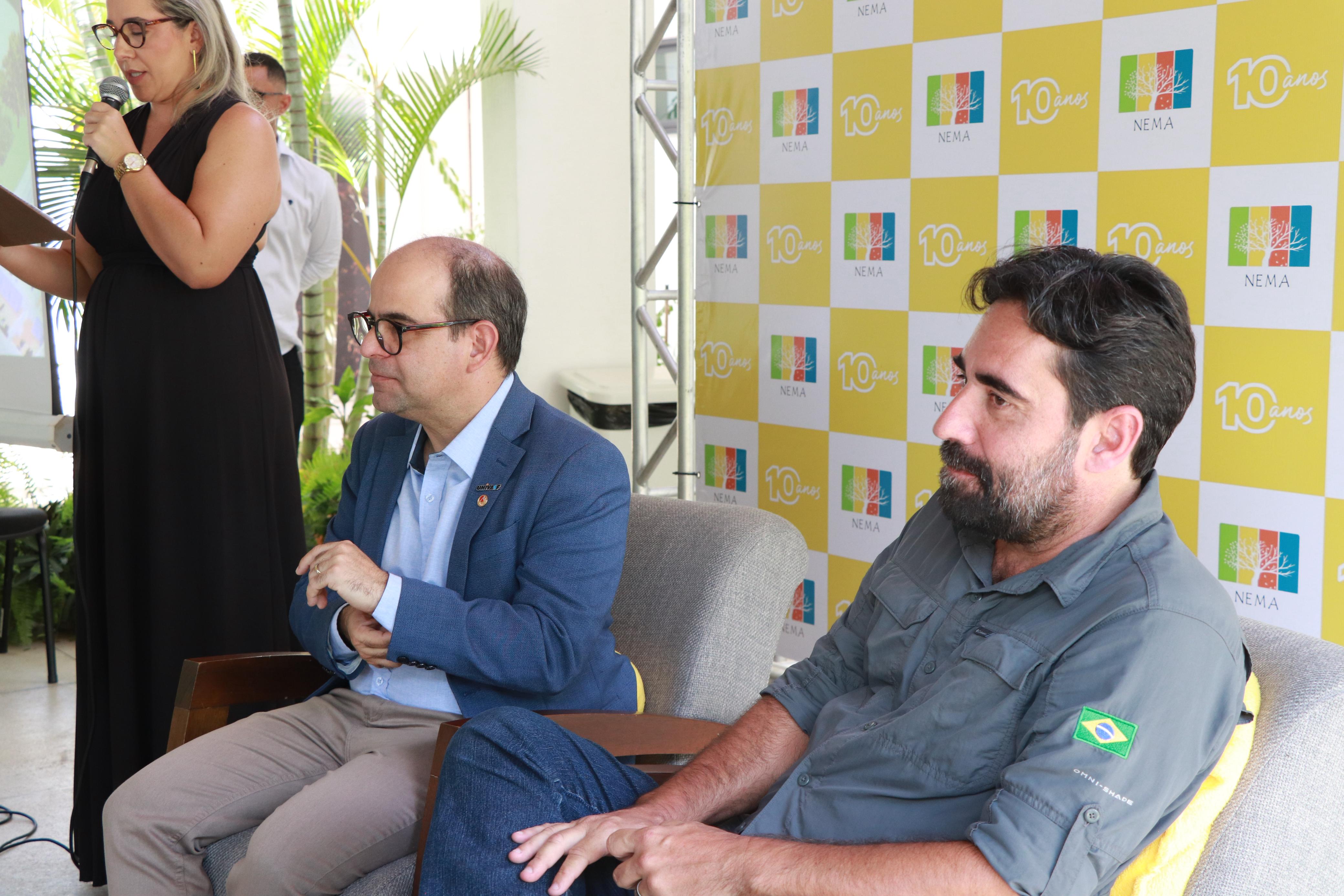 Para o coordenador do NEMA, professor Renato Garcia, o momento foi de celebração, memória e gratidão. "Celebrar 10 anos do NEMA é reconhecer o esforço coletivo de muitas pessoas que acreditaram nesse projeto desde o início. Nada disso seria possível sem o empenho dos servidores, estudantes, pesquisadores e parceiros que caminharam conosco ao longo dessa trajetória. Somos gratos também às instituições que fomentam e acreditam no nosso trabalho. O NEMA foi construído com recursos do Projeto de Integração do Rio São Francisco (PISF), executado pelo Ministério da Integração e Desenvolvimento Regional (MIDR) para atuação no licenciamento ambiental da obra. Atualmente, o núcleo atende a outros parceiros como pelo Ministério do Meio Ambiente e Mudança do Clima (MMA) , Fundo Global para o Meio Ambiente (GEF), o Banco Interamericano de Desenvolvimento (BID), o Serviço Florestal Brasileiro, o Banco Nacional de Desenvolvimento Econômico e Social (BNDES), entre tantos outros parceiros fundamentais para o fortalecimento das nossas ações", destacou.