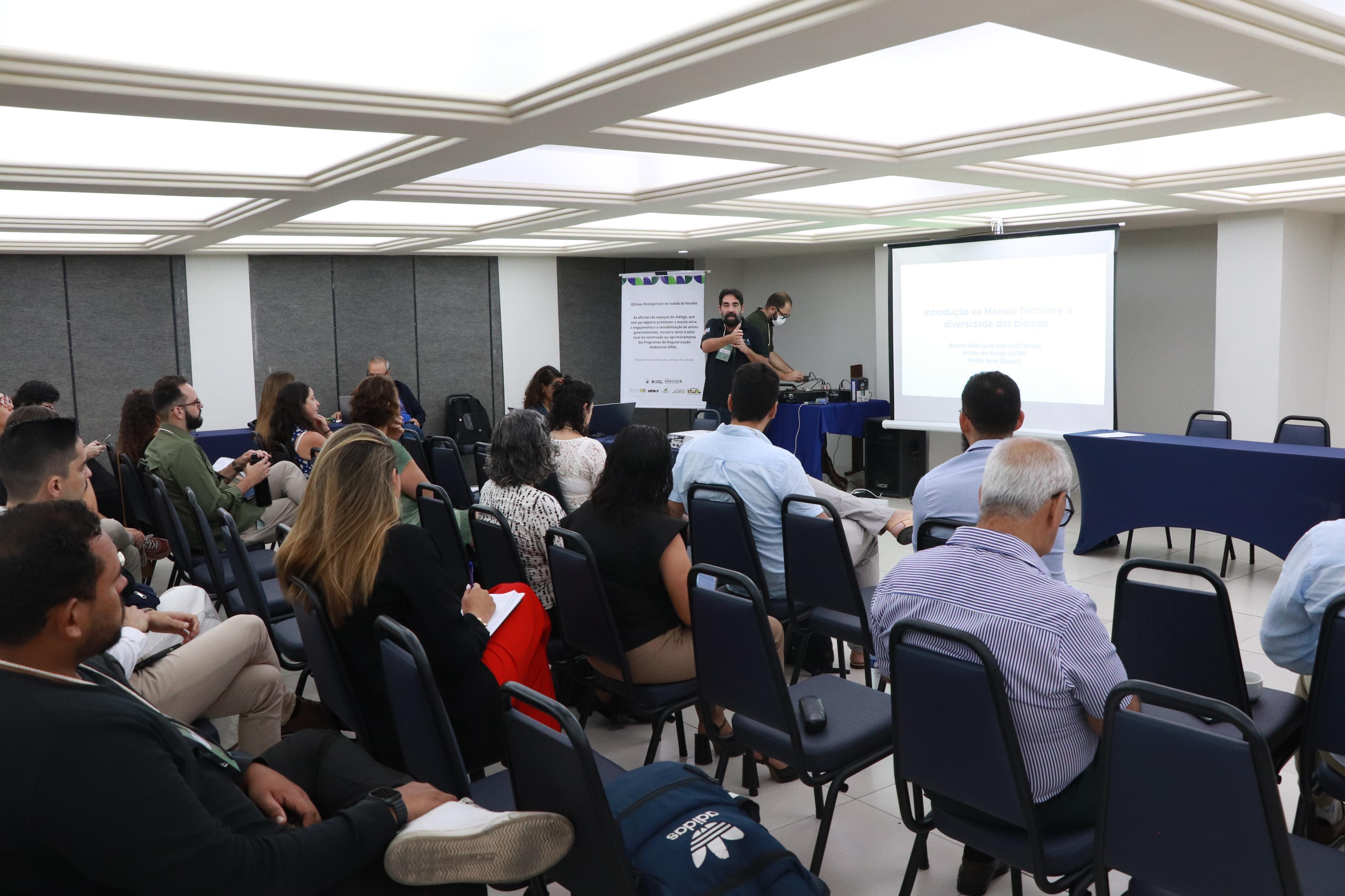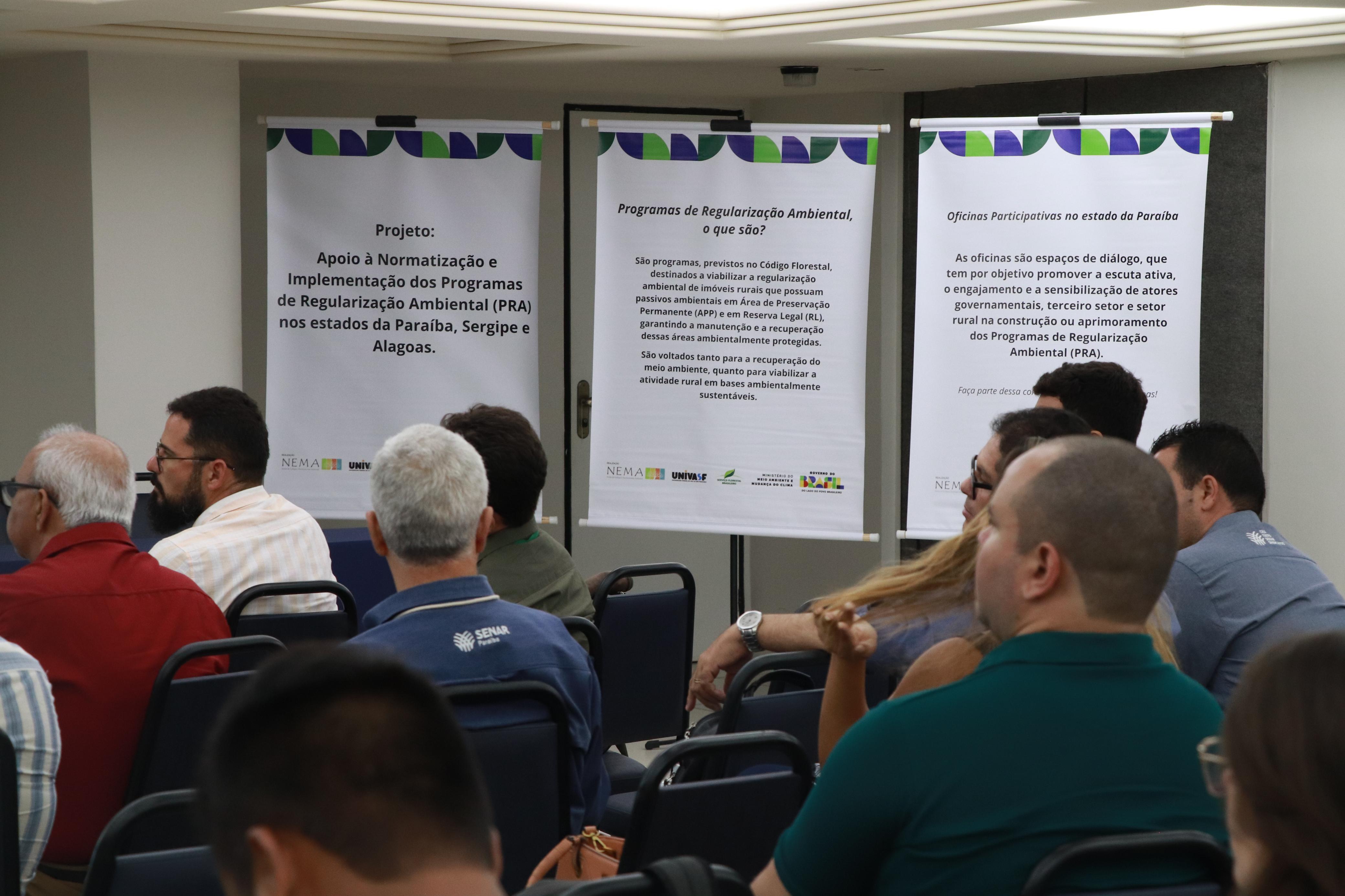 A cidade de João Pessoa recebeu, nos dias 29 e 30 de janeiro, o evento "Oficina Participativa do PRA - Paraíba" (Oficina 1 e Oficina 2), voltado ao aprimoramento do Programa de Regularização Ambiental (PRA) no estado. As atividades foram ministradas pelo Núcleo de Ecologia e Monitoramento Ambiental (NEMA), centro de pesquisa da Universidade Federal do Vale do São Francisco (Univasf), subsidiado pelo Serviço Florestal Brasileiro (SFB) atualmente vinculado ao Ministério do Meio Ambiente e Mudança do Clima (MMA). Durante a ocasião, as oficinas reuniram técnicos, pesquisadores e representantes institucionais.
